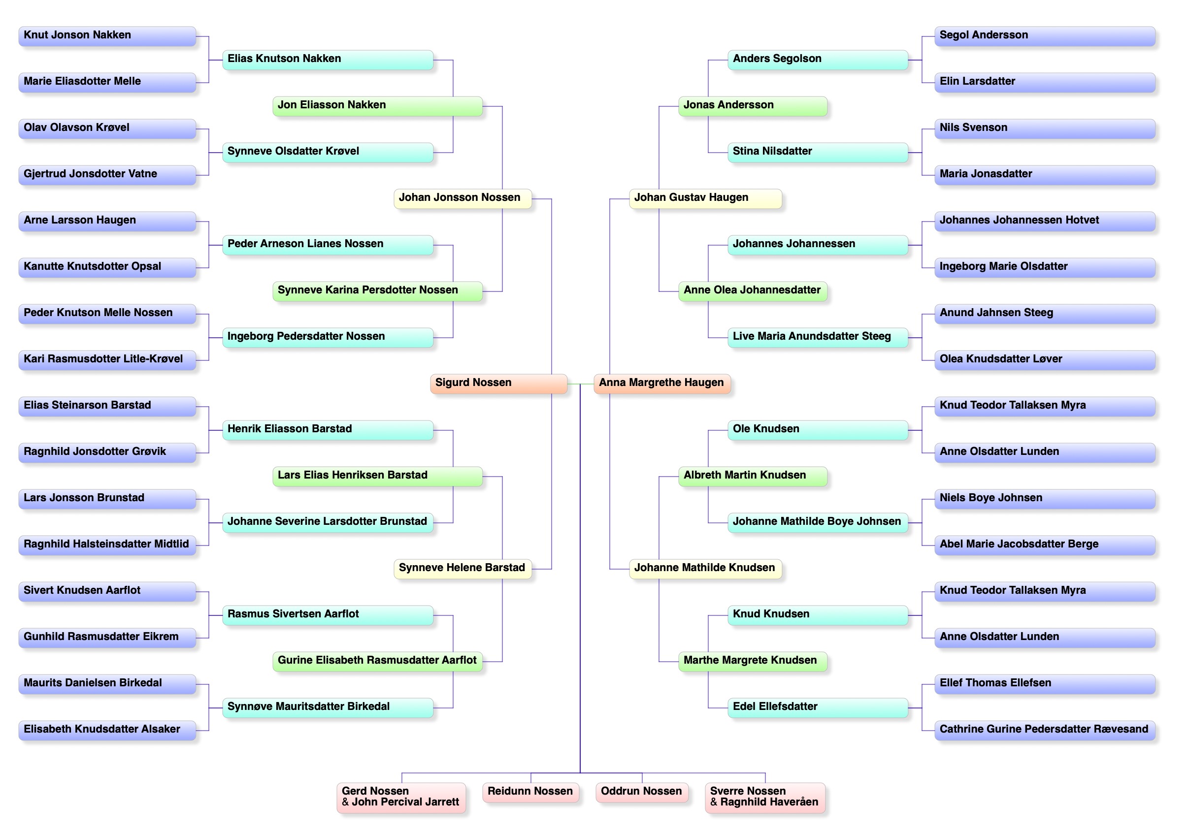 Kevins mormor Anna-Margrethe Haugen og morfar Sigurd Nossen hadde sine røtter på Øvre Sandsvær, Sørlandet og Ørsta.