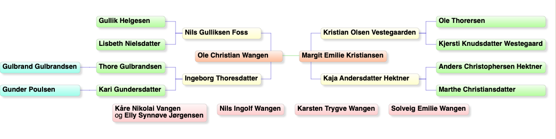 Margit Emilie Kristiansen og Ole Kristian Wangen var Karis farmor og farfar. Hun hadde sine røtter i Rælingen, han på Hadeland.